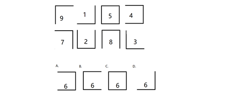 【乐恩解析】A。元素遍历,各个元素各不相同,B在中间图出现过,C在左下图出现过,D在正上图出现过,因此选A。